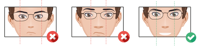 Les yeux doivent être centrés verticalement dans les lunettes.
