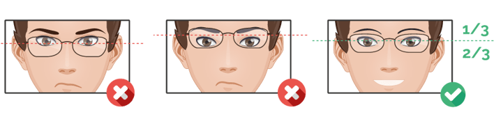 Les yeux doivent se situer horizontalement au niveau du tiers supérieur des lunettes.